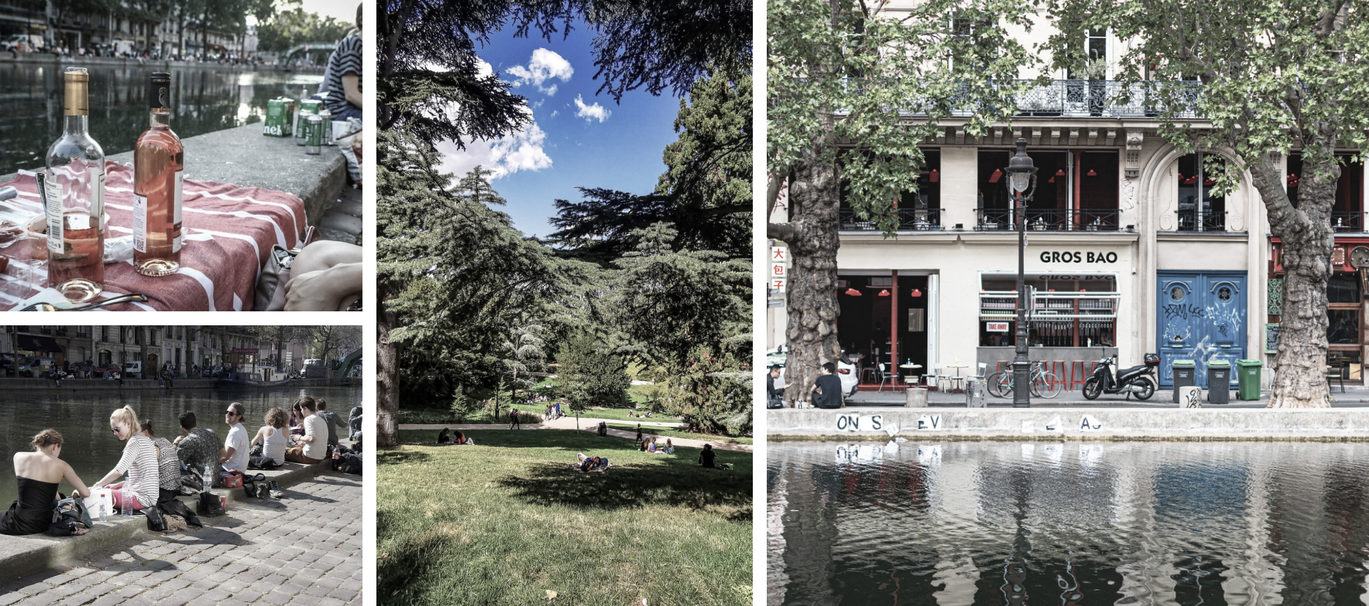 沒有塞納河畔有名的運河沿岸,也是當地人很喜歡享受日光浴、散步的區域。 同樣位在巴黎19區的聖馬丁運河,這裡雖然沒有超大草皮,不過卻可以非常親近水的方式散布、河畔沿岸有很多有意思的小店 家,( 不像市中心或瑪黑區那樣精緻,更偏向獨立小店的區域 ),在這區散步有一種都市人的獨有優閒感,最好可以穿一件耐髒的褲子、輕裝上陣,隨性的買杯啤酒就可以野餐啦!