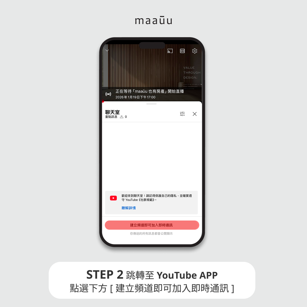 只要三個步驟,即可加入 maaūu 也有房產線上說明會,並在直播中即時提問互動: