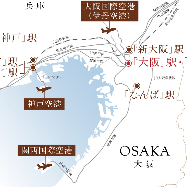 立基梅田核心樞紐,掌握城市交通主脈,串聯關西主要城市與國際機場,隨著未來交通建設推進,持續放大都心移動的價值與效率。