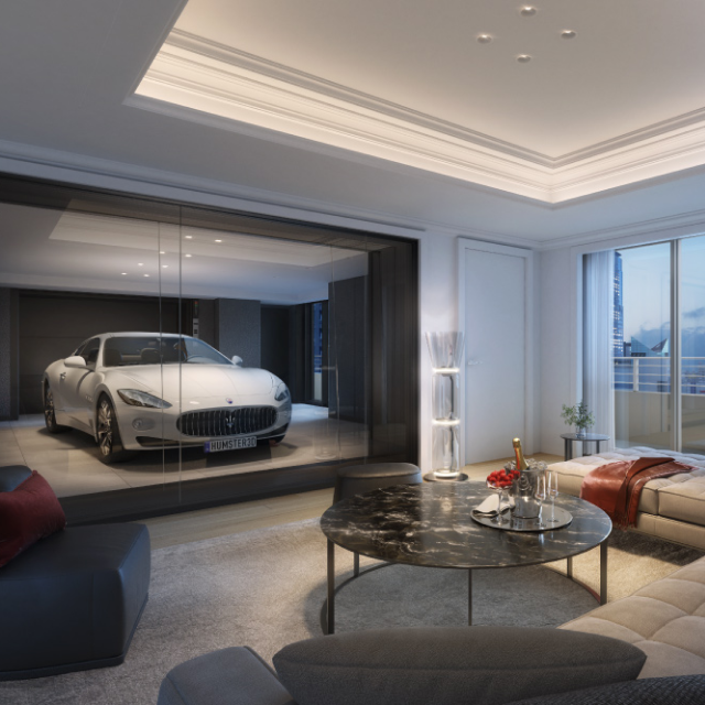 可以透過私人電梯將您珍愛的座駕運送到家中,打造了一個隔音空間,讓您足不出戶即可欣賞它的風采。