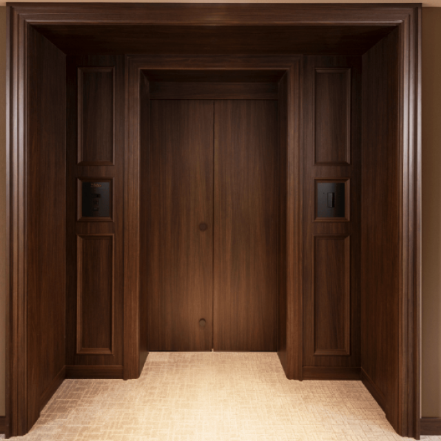以新古典語彙打造入口儀式感,厚重木質與對稱構圖,營造如王宮般的歸家尊榮體驗。