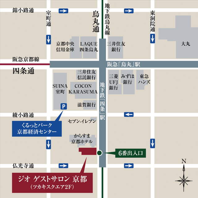 至烏丸御池 2 分、四條 6–12 分、京都站 10–16 分,完整串聯京都生活圈。