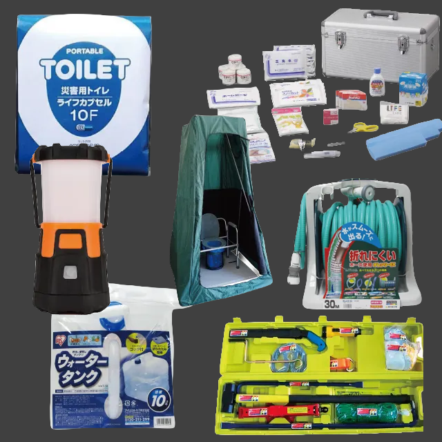 水電池、井蓋式廁所、急救器材等確保災害時可用性。