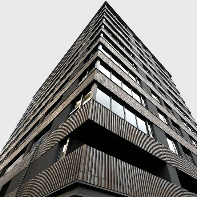外牆採用東濃地區職人工藝「Timber Brick 百葉瓦片」與「Brick Tile」,以白色陶土、自然乾燥與1300°C高溫燒製,致力於在京都中心創造一座具有歷史厚度和現代精緻感的住宅。