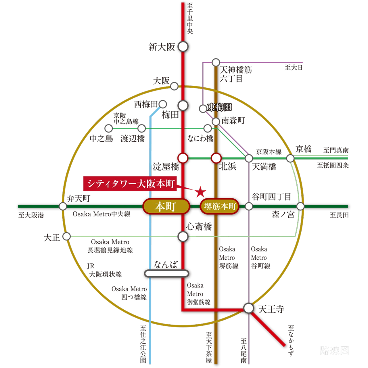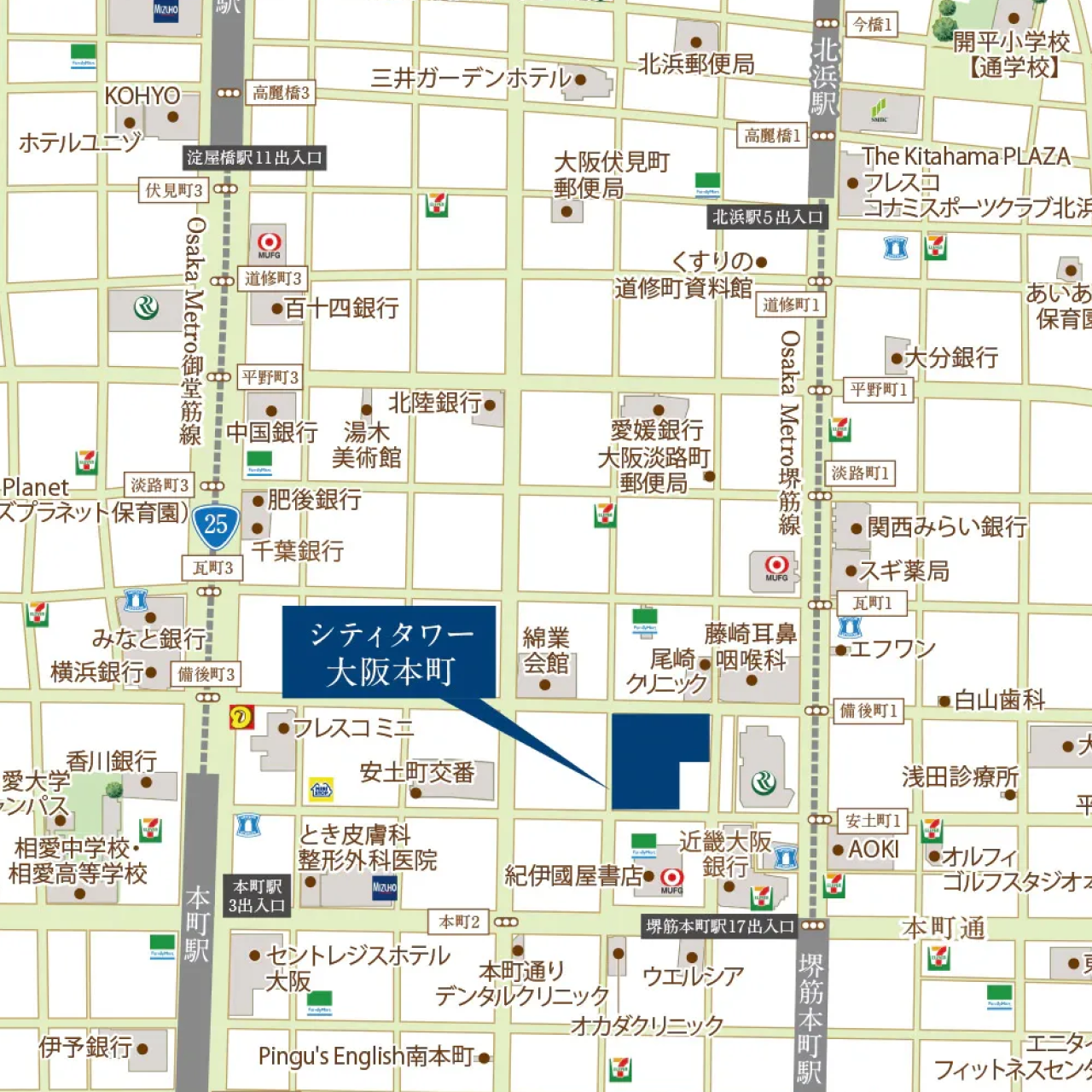 | 交通 | Osaka Metro 御堂筋線「本町」站步行 5 分鐘/Osaka Metro 堺筋線「堺筋本町」站步行 3 分鐘/Osaka Metro 中央線「本町」站步行 5 分鐘/Osaka Metro 四橋線「本町」站步行 5 分鐘/Osaka Metro 堺筋線「北濱」站步行 9 分鐘/Osaka Metro 御堂筋線「淀屋橋」站步行 11 分鐘/京阪電鐵 京阪線「北濱」站步行 13 分鐘/京阪電鐵 京阪線「淀屋橋」站步行 11 分鐘 |