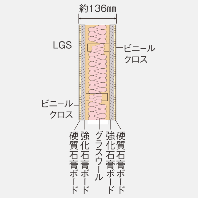 採用兼顧耐火性與隔音性能的 136 ㎜ 厚乾式耐火隔音牆,有效提升居住私密性與安全性。